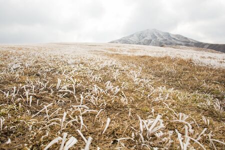 Mount Aso and Kusasenri in winter. covered by golden yellow grassland - Kumamoto, Japan