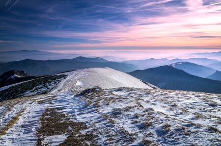 Majestic sunset in the winter mountains landscape. HDR image
