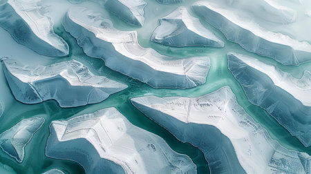 Aerial view of ice formations on Lake Baikal, Siberia, Russia