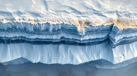 Aerial view of ice and snow in winter. Winter background.