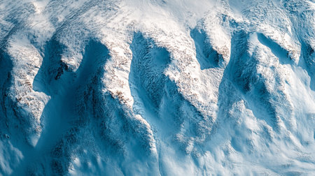 Aerial view of snow covered mountains in winter. Top view.