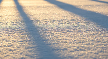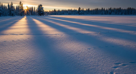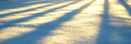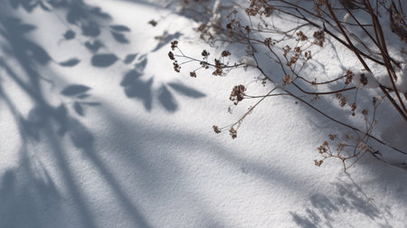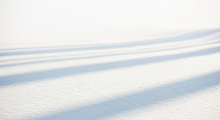 Captivating winter scene featuring gentle shadows cast by bare branches on a smooth snow blanket, evoking a sense of calm and peace in nature.