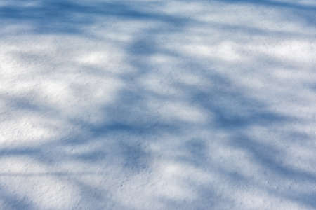 Texture and pattern of fresh fallen snow with shadows from trees. Natural snow background.