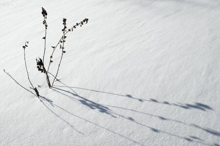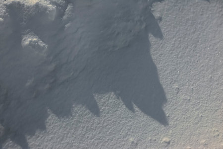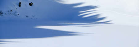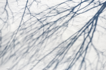 Shadow from a tree in the snow. Shade of tree silhouette on a snow. Copy, empty space for text.