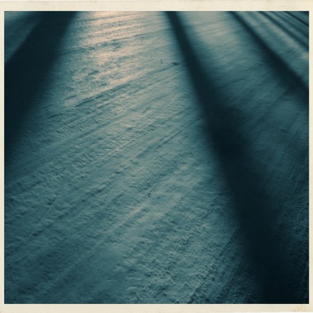 A play of shadows on the surface of freshly fallen snow in the backyard.