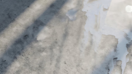 Abstract close-up of a light gray surface with wet and dry areas. Shadows are cast across it