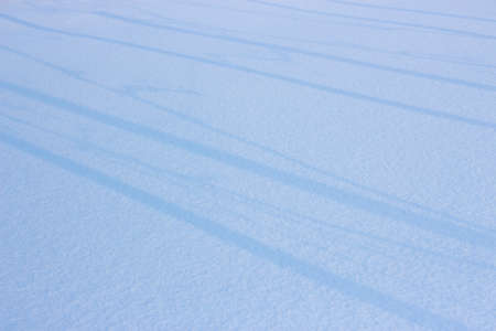 shadows of trees in the fallen snow after snowfall. Close-up photo