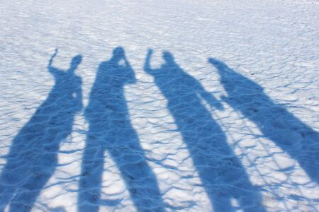 shadow background of group of teenagers on the ice holding hands at the Medeo