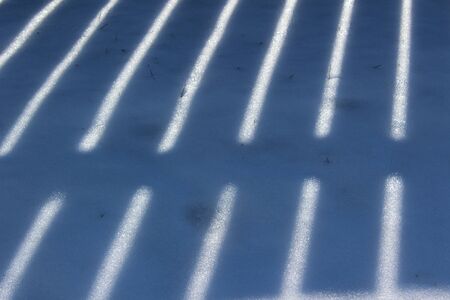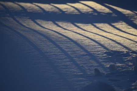 The alternation of light and dark bands in the snow. The shadow of the fence.