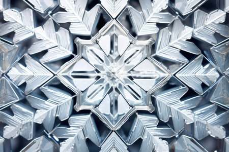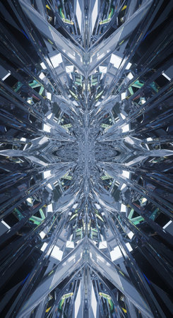Abstract geometric crystal pattern with symmetrical metallic reflections