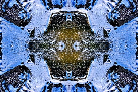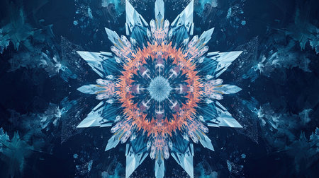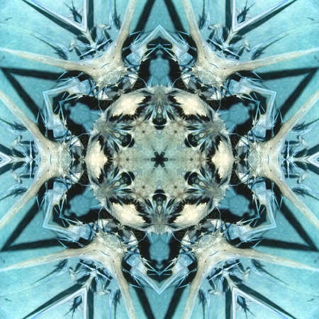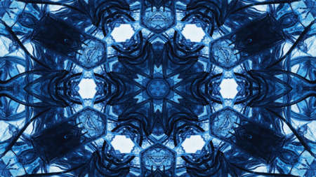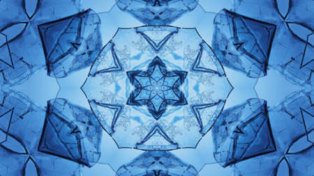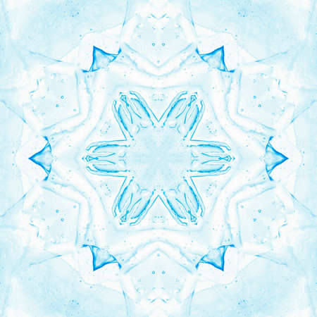 abstract blue ice pattern symmetry background design. circle snowflake.