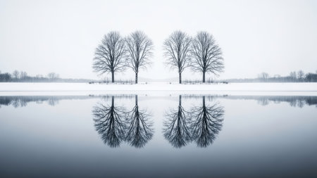 A stunning and awe-inspiring photograph of snow-covered mountains reflecting in the still water, creating an otherworldly scene of tranquility and beauty. The composition is symmetrical, capturing every detail from distant peaks to intricate ripples on the surface of the lake. This image will showcase the majestic grandeur of nature's artistry. --ar 26:15 --v 6.1 Job ID: 8d03faf5-d7b0-44ad-aad6-8ced55097aab