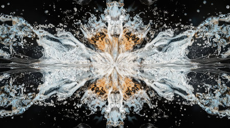 Clear water splashing in various directions against a dark background, forming an abstract, fresh, and visually impactful image