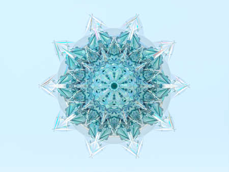 Abstract 3d geometric crystal mandala flower with iridescent texture. faceted gem, winter snowflake.