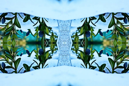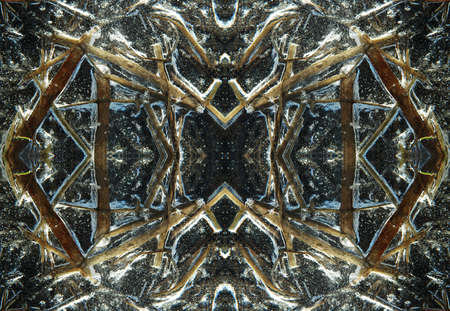 Digital painting, illustration. Winter crystal pattern from frozen branches.