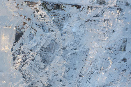 Texture of ice in winter. Pieces of frozen water on a street in the winter. The texture and texture of the frozen water in winter and outdoor.