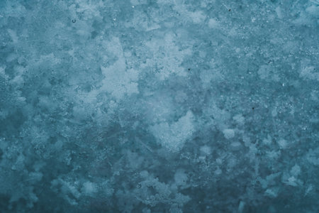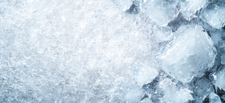 Close-up of ice crystals creating a textured backdrop, featuring shimmering surfaces and cool tones, ideal for winter-themed designs and holiday season graphics with ample copy space