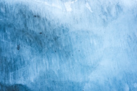 Close-up blurred wall of a centuries-old glacier with a structure of stripes and bubbles. Ice blue light texture