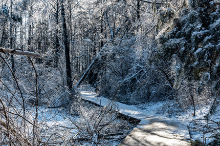 creek, ice and snow in winterscape