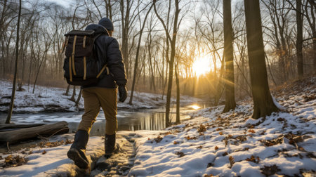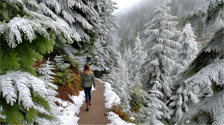 A Woman Adventuring Through a Snowy Forest, Embracing the Tranquil Beauty of Winter s Wilderness
