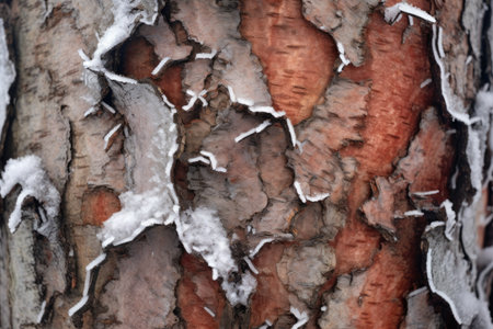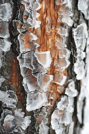 close-up of frozen tree bark textures, created with generative ai