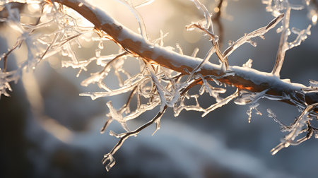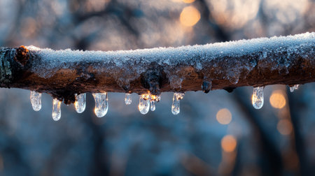 AI Generated. A branch covered in icicles hanging from it
