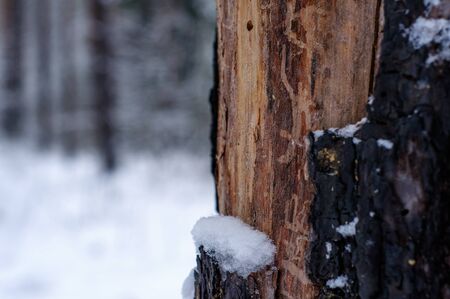 tree bark and snow. winter