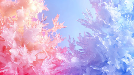 Stunning ice crystals form a mesmerizing display of vibrant colors, showcasing intricate patterns and textures that evoke beauty and serenity in winter landscapes.