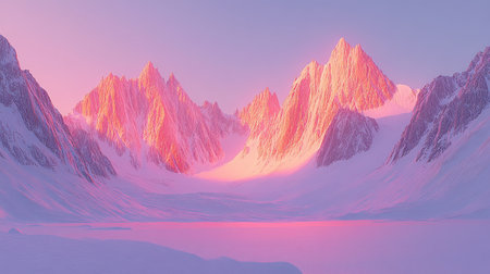 Pink Sunset over Snowy Mountain Peaks Winter Landscape Scenic View sky icy art cold calm hill light