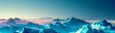 Futuristic Digital Landscape with Polygonal Mountains and Icy Glacier Peaks in a Serene and Ethereal Winter Scene