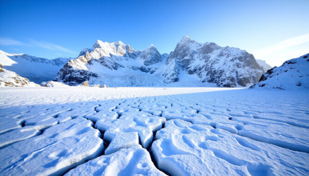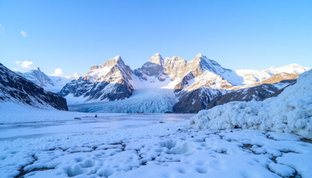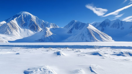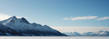 Breathtaking Arctic Landscape with Majestic Snow-Capped Mountains Under a Clear Blue Sky in Winter