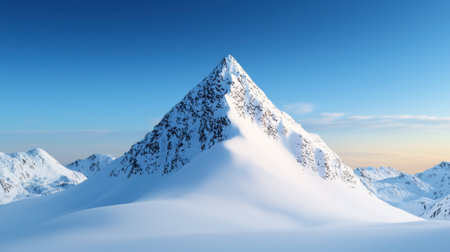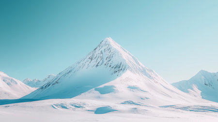 Majestic Snow-Covered Mountain Peak Against Clear Blue Sky in Serene Winter Landscape.