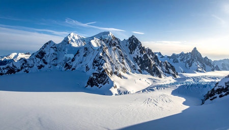 The Majestic and Breathtaking SnowCapped Mountain Peaks Rise Over the Glacier Below