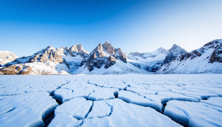 Stunning Arctic Landscape with Majestic Snow-Capped Mountains and Expansive Glacial Ice Fields