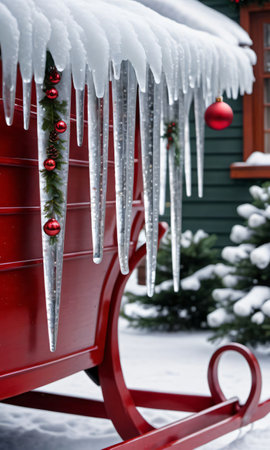 Photo Of Christmas Icicles Hanging From A Sleig. Generative AI