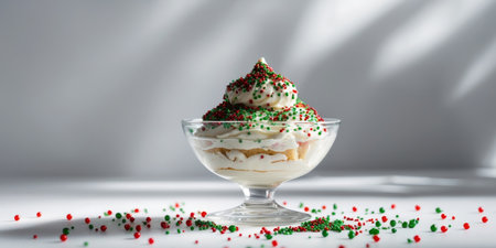 AI Generated. Festive Dessert with Red and Green Sprinkles in Glass Bowl for Holiday Celebrations