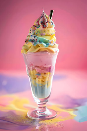 Rainbow Swirl Ice Cream in glass with sprinkles a summer dessert