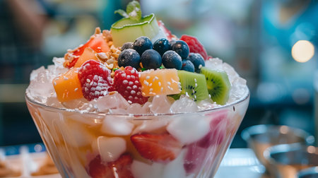 Patbingsu, shaved ice with sweet toppings, summer refreshment