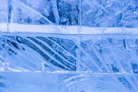 Beautiful pure ice with cracks on the Lake Baikal. Unique, wonderful, clean, cool ice of the largest and cleanest lake in the world.