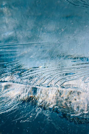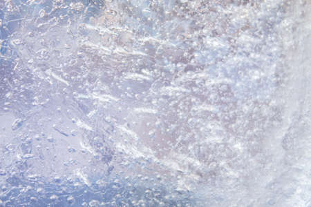 Texture and pattern of transparent ice with frozen air bubbles. Abstract ice background for design.