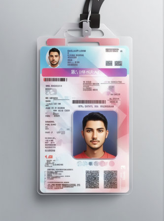 A vivid ID badge rests against a colorful background showcasing modern design elements in a professional context.