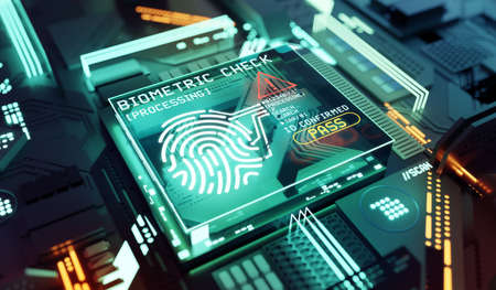Fingerprint technology scan provides security access. Advanced technological verification future and cybernetic. Biometrics authentication and identity Concept. 3D Rendering.