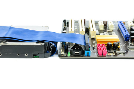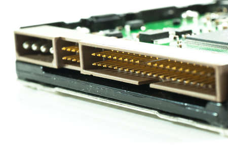 A fragment of a hard disk of a computer, with communication and feeding with cables.