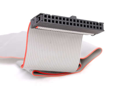 Sata computer cable on a black background. Sata as a new technology for connecting a hard drive to a computer. Satakabel communication technology