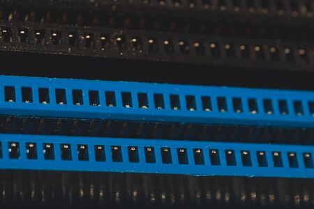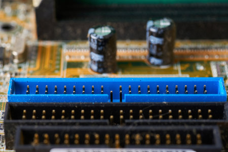 Connectors on the computer mother board. Selective focus.