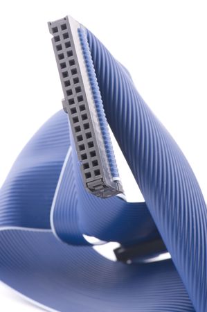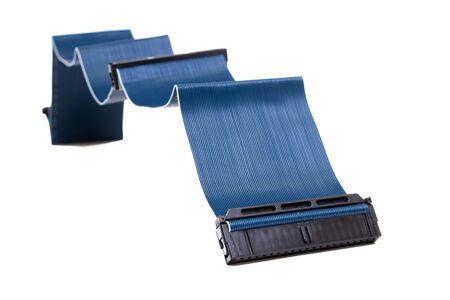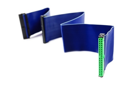 Blue colored IDE cable laid in the zigzag form on white background
