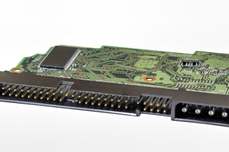 A close up of a mother board for a hard drive.