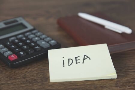 Idee write on a sticky note isolated on Office Desk