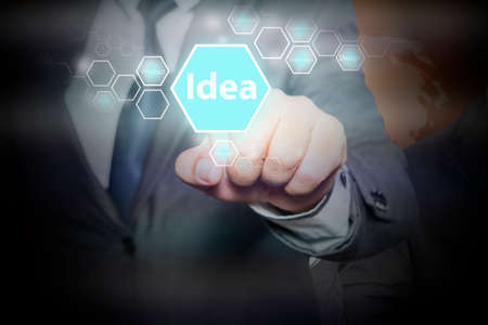 Businessman pressing button on touch screen interface and select idea. business concept.