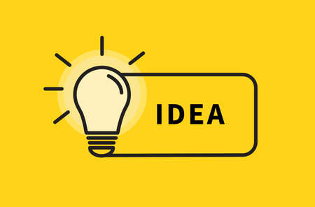 Concept of idea, creativity, start up or brainstorming. The word idea and bulb drawn on yellow toy blocks against bright yellow background with copy space.